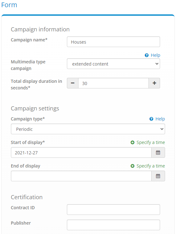 A campaign is the association of one or more content elements on one or more screens with a particular context (times, periods, frequencies, etc.)