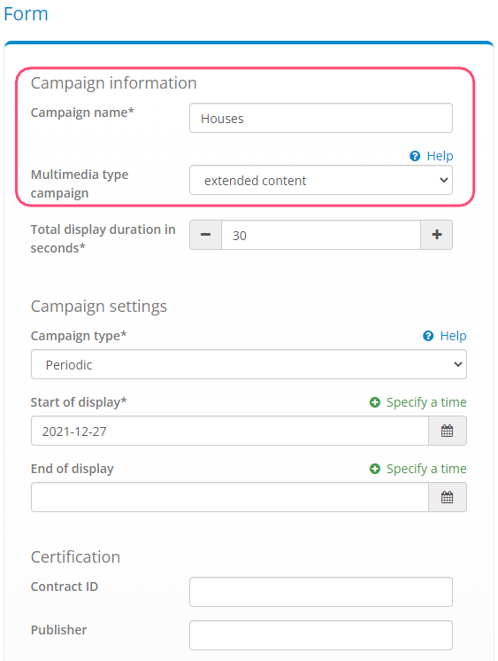 This name will be displayed on the list of campaigns, on the screen page, in the broadcast statistics, etc.