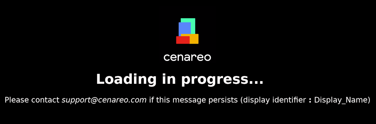 Otherwise, a new message on the screen indicates that no content is displayed: this means that the screen is properly registered and you can log in to manage.cenareo.com to start scheduling content.