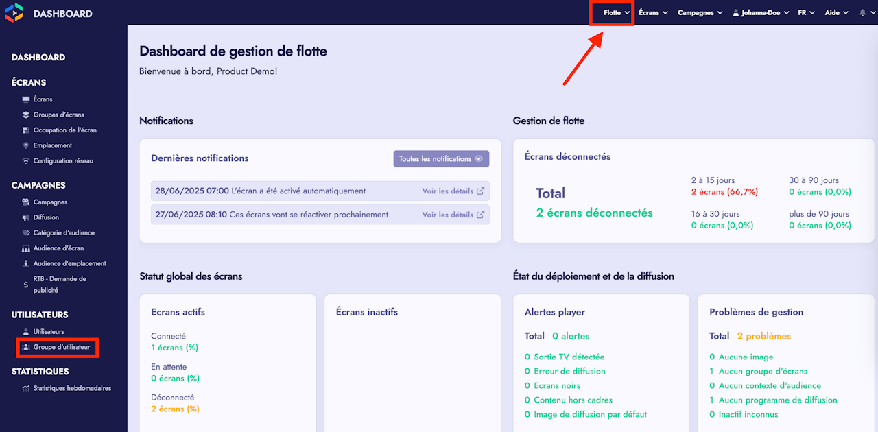 In more complex fleets, user groups are useful if individuals need access to additional features.