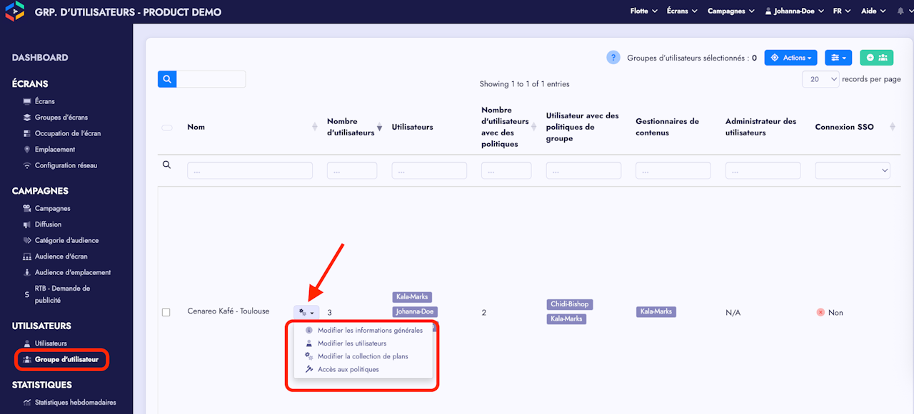 From this page, you can manage your user group. You can: