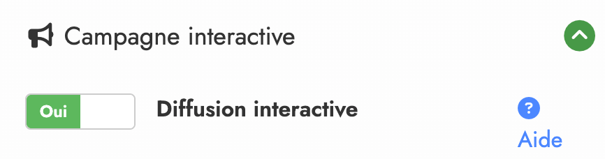 3- Une fois activée, les paramètres de personnalisation de la campagne interactive apparaissent. (image 2)