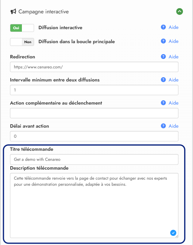 Tous les paramètres liés à la campagne interactive se trouvent dans le formulaire de configuration de la campagne.