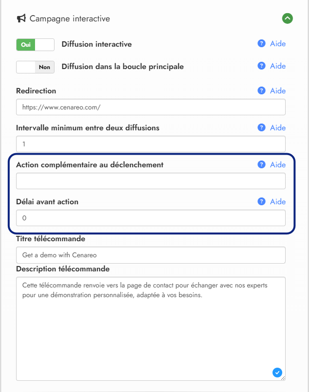 3- Une fois activée, les paramètres de personnalisation de la campagne interactive apparaissent. (image 2)