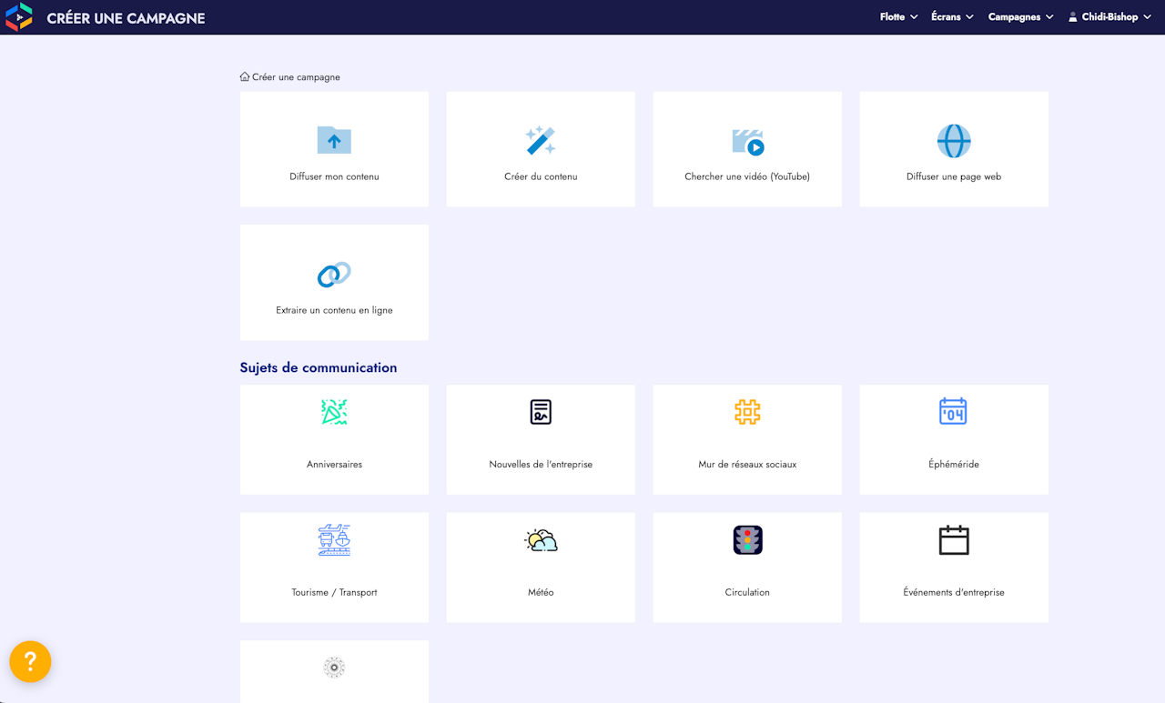 Dans ce guide, nous vous présentons les différentes catégories de contenus disponibles sur la plateforme, pour créer vos campagnes.