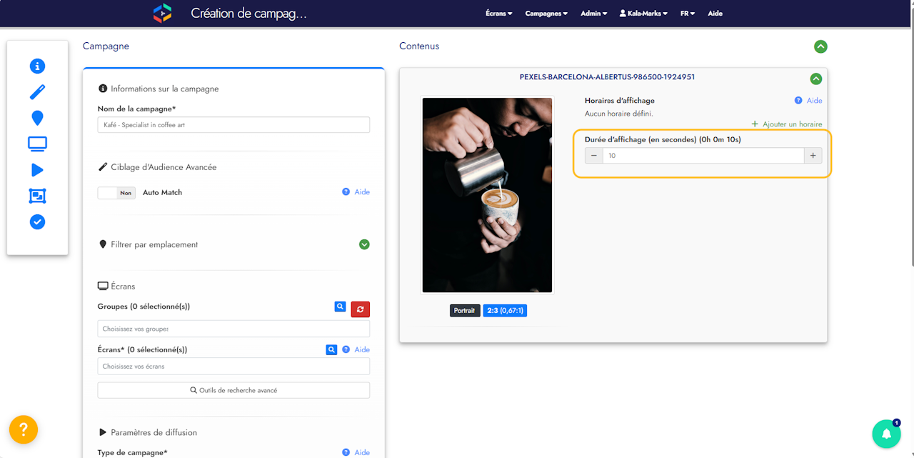 Ajuster la durée : Modifiez cette durée par défaut dans les paramètres de votre contenu si vous souhaitez un affichage plus long ou plus court.