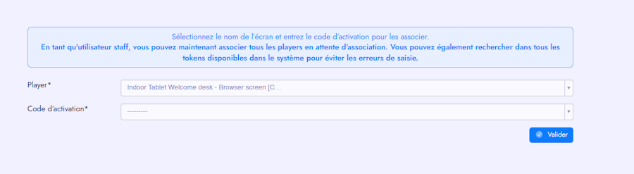 Après avoir vérifié toutes les conditions requises nécessaires à l’installation, vous pouvez procéder aux étapes permettant de lier votre écran et de démarrer l’affichage de votre contenu :