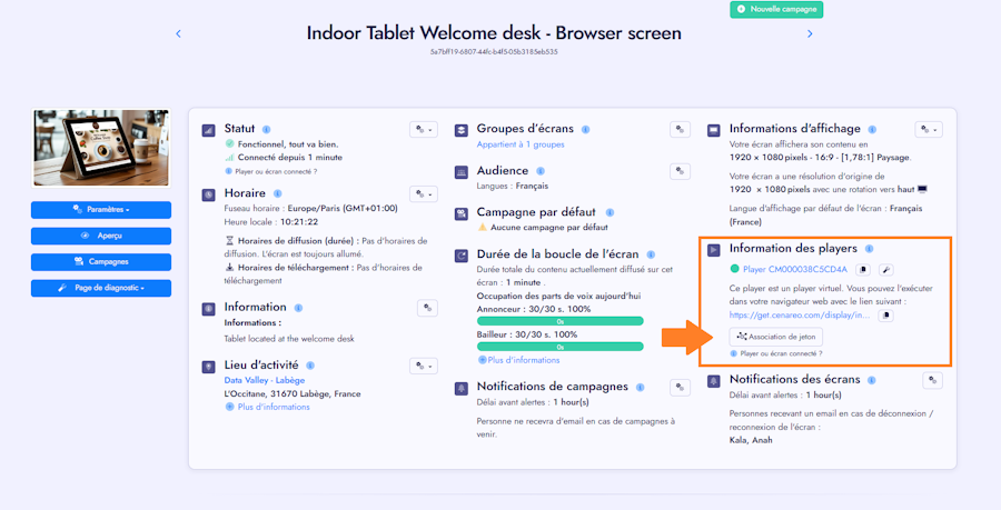 Après avoir vérifié toutes les conditions requises nécessaires à l’installation, vous pouvez procéder aux étapes permettant de lier votre écran et de démarrer l’affichage de votre contenu :