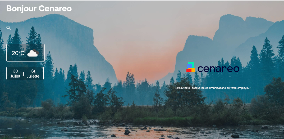 L’application permet d’intégrer dans ces deux solutions vos communications internes pilotées par Cenareo au travers d’une page habillée à votre image.