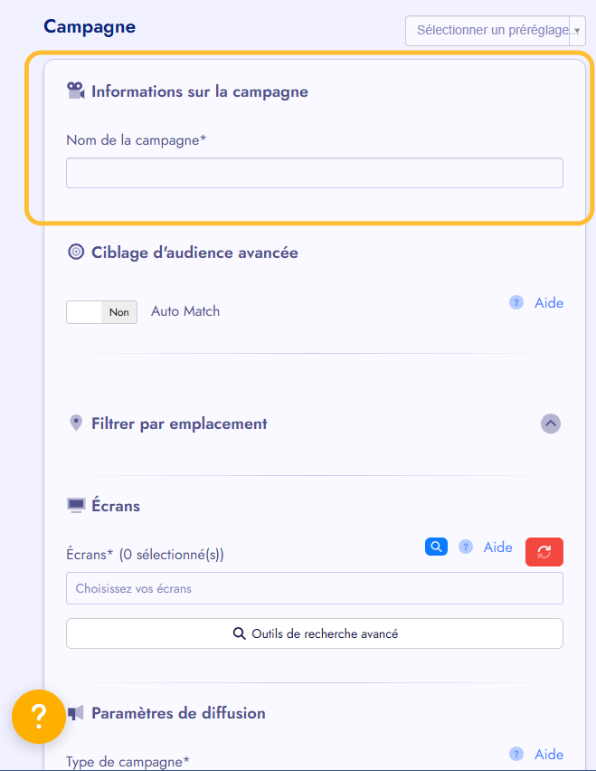 Il vous accompagne étape par étape, depuis les informations de base jusqu’aux options avancées, afin de vous aider à gérer vos campagnes facilement et en toute autonomie.