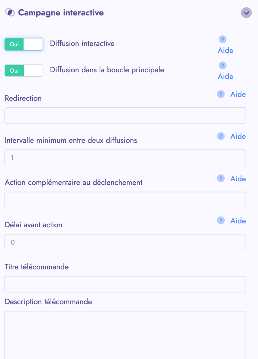 Consultez notre guide complet de campagne interactive, pour explorer en détail toutes les options disponibles.