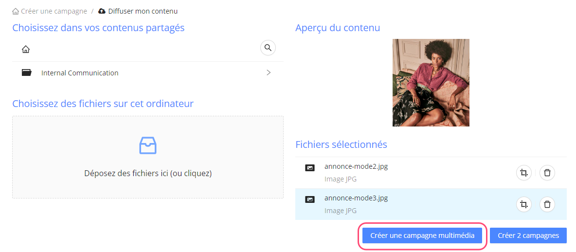 Cliquez sur "Créer une campagne multimédia.